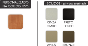 Acabamento: Personalizado na cor do piso e cores sólidas